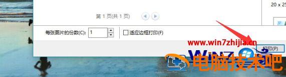 4、我们再次返回到打印的面板,或者重新点击打印进入到这一面板中,这时我们在面板中找到最下方的‘适应边框打印’这一选项。