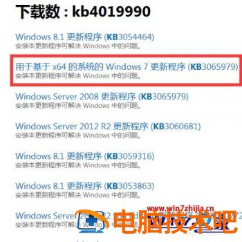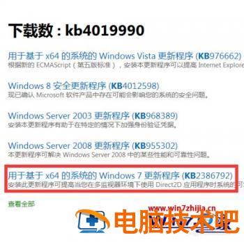 3、然后找到【基于x64系统的win7更新系统】。这个就是缺失的那个文件了。X64就是64位,一般电脑现在都是64位的,当然如果你的电脑是32位的可以向后找一下找到基于X32系统的win7更新系统进行下载。