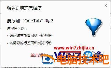 3、单击“添加”,这样扩展OneTab就安装好了。