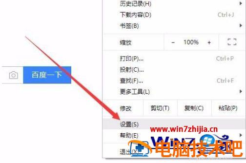 2、在弹出的菜单中点击“设置”菜单项。