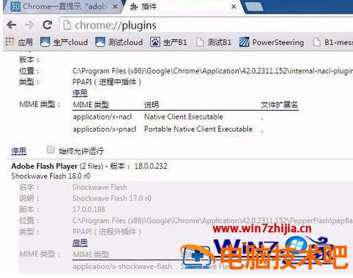 2、输入chrome://plugins/ 停用旧版本,启用新的版本。