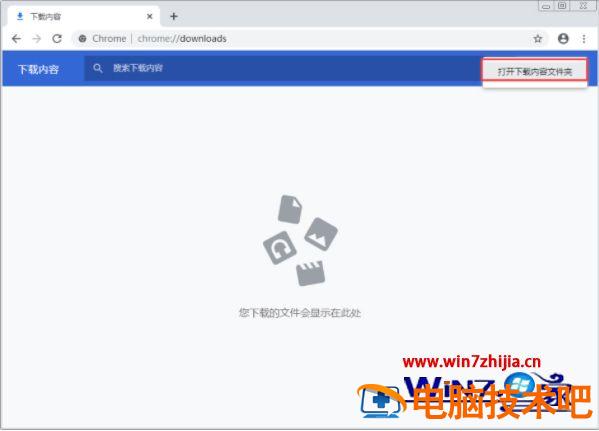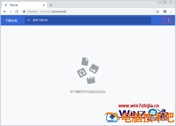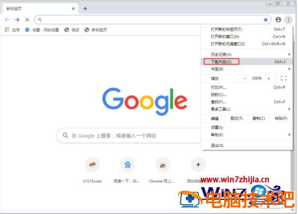 1、打开Chrome浏览器右上角的控制菜单的图标,点击“下载内容”选项(或使用快捷键Ctrl+J);