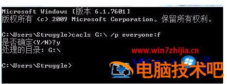 2、在输入命令完是会询问”是否(Y/N)”输入Y就可以了。这时需要把U盘重新插一下,然后就去除了U盘的写保护(此方法只适用于NTFS格式的U盘写保护)。