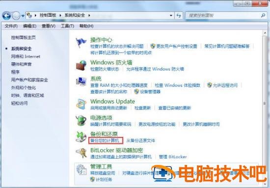 4、计入系统和安全选项后,选择页面中备份的计算机选项;