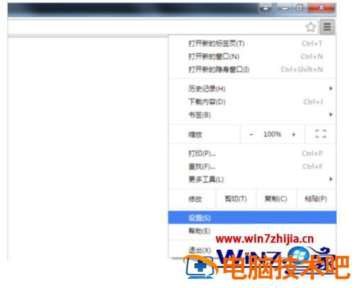 2、在下拉菜单点击设置。