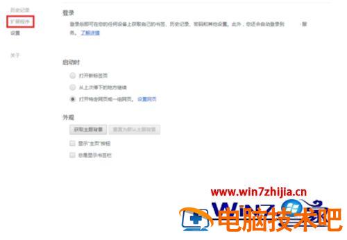 3、在设置页面中点击扩展程序。
