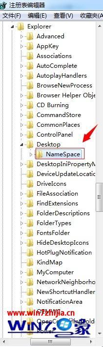 3、输入命令并按确定后,这时进入到注册表编辑界面。接着我们依次点击注册表中的文件夹“HKEY_LOCAL_MACHINE”——“SOFTWARE”——“Microsoft”——“Windows”——“CurrentVersion”——“Explorer”——“DeskTop”——“NameSpace”即可。