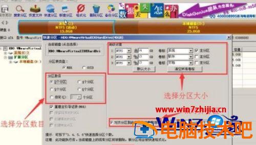 3、快速分区的时候,根据固态硬盘的大小分不同的区,一般120G的固态硬盘装Windows7系统时,建议分2个区,256G的固态硬盘可分3个区。