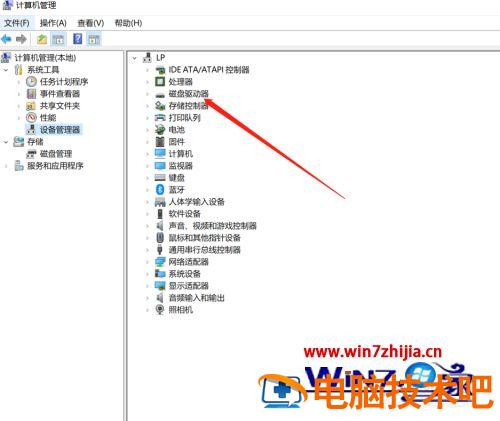 5、在右侧设备管理器树型列表中找到磁盘管理器并点击。