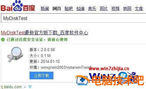 方法四:如果上述方法还是不能解决问题,则需要借助专业的内存卡修复工具进行修复操作。上网搜索并下载“MyDiskTest”。下载完成后双击并运行该程序,在打开该修复程序后,将安装有内存卡的读卡器插入电脑USB接口中,然后从测试列表中选择相应内存卡盘符,然后点击“立即开始测试此驱动器”,然后该程序就会对内存卡进行相关修复操作。修复完成后装回手机中进行测试,如果还是不行,可以选择在修复时勾选“全面扫描及检测坏块”和“同时检测是否采用了黑块”两项。