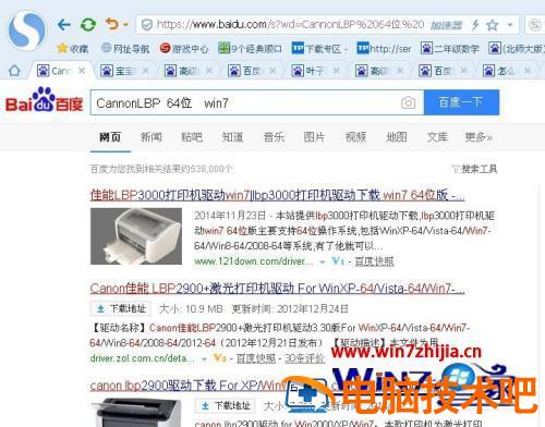 4、考虑到时打印驱动的问题,win7有可能是64位的,百度下载 win7 64位 跟网络打印机(如CannonLBP)匹配的驱动下载。