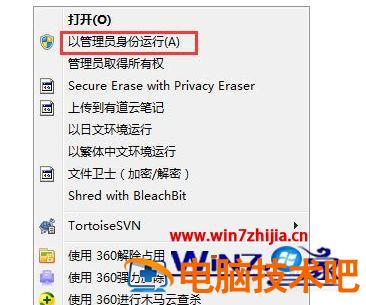 2、用鼠标右击一下cmd,再出现的选项中,单击一下“以管理员身份运行”;