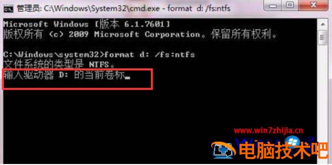 4,确认命令后,会提示输入当前驱动器的卷标。