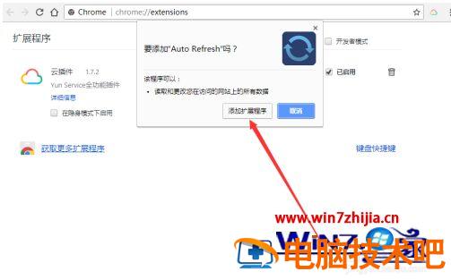 4、将下载好的插件Auto Refresh直接拖动到扩展程序里面,自带刷新插件就安装成功了如下图。