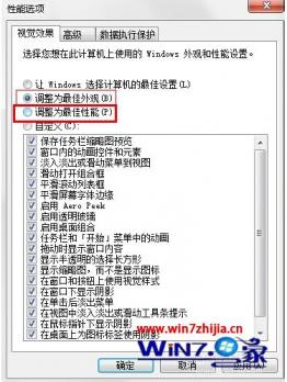 6、看到“视觉效果”,点“调正为最佳性能”,再点“应用”,会有一个灰色的桌面停留1~3秒。