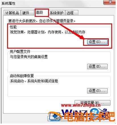 5、在“高级”第一个“性能”,点“设置”。