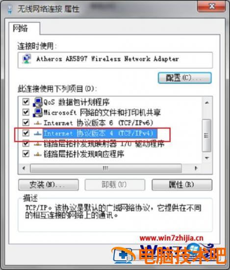 4、我们进去网络连接属性界面,点击Internet协议版本4(TCP/IPv4)。