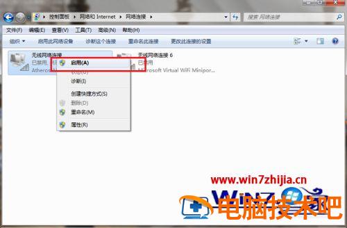 3、进去网络连接之后,首先查看连接有没有被禁用,如果禁用了话,进行启用,没有禁用,可以先禁用然后再启用,进行重新识别网络。