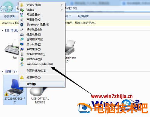 2、右键单击设备中的电脑图标,选择Windows update。