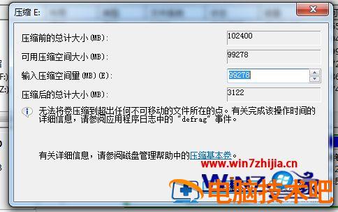 5、最后,选择需要压缩的空间,点击“压缩”即可进行压缩。完成“调整分区”。