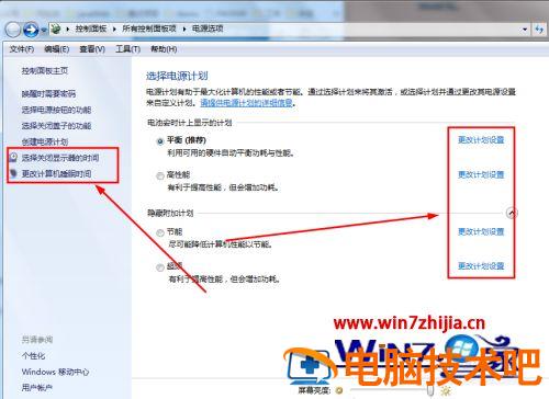 6、然后打开控制面板的电源选项界面,任一点击图中红框中的选项都可以,进入下一步。