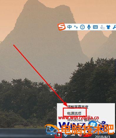 5、右键单击电池图标按钮,选择电源选项。