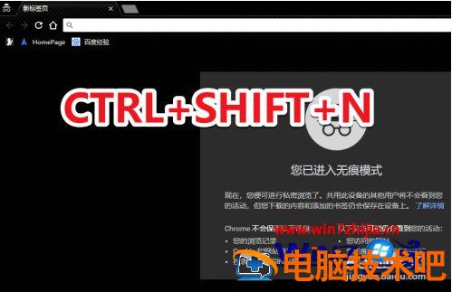 3、瞬间会在原始网页的基础上新弹出一个窗口,这就是谷歌浏览器的隐私模式。在当前网页不会保存浏览记录也不会生成表单数据。不会将cooki和历史记录自动保存作为推荐凭据。