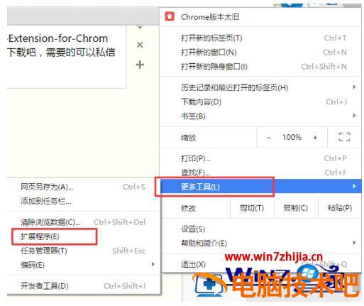 3、然后,打开Chrome浏览器,在地址栏中输入chrome://extensions并按回车,将会打开“扩展程序”页面。或者你也可以自己手动进去。