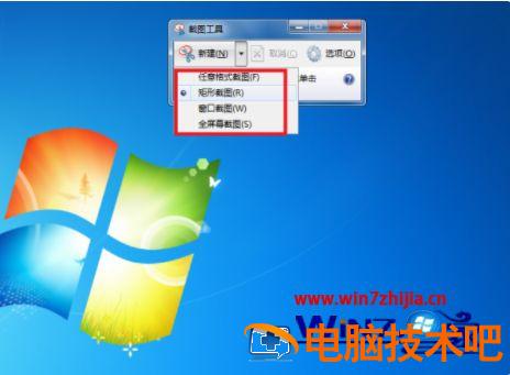 4、点击新建旁的下拉按钮,在下拉菜单中选择一种截图样式。
