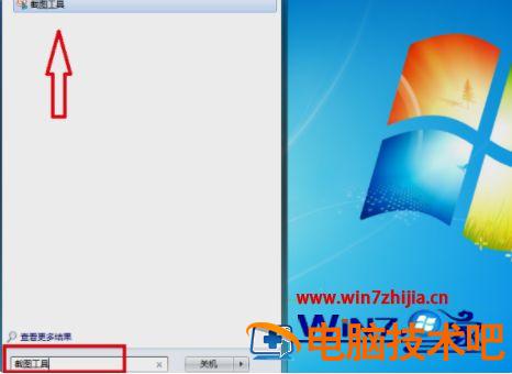 2、在开始菜单界面的程序搜索框中输入“截图工具”,图标出现后直接点击。
