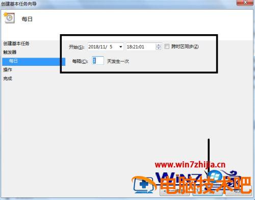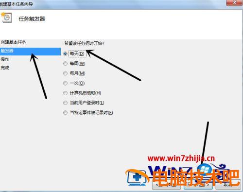 3、此时页面会切换到任务触发器编辑页面,在任务触发器编辑页面我们设置好任务开始的周期,然后点击【下一步】按钮。