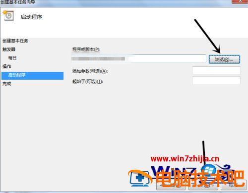 6、此时页面会切换到启动程序设置编辑页面,在启动程序设置编辑页面,我们点击右边的【浏览】按钮,然后在弹出的选择框内任选一个程序作为启动项。设置完成后继续点击【下一步】按钮。