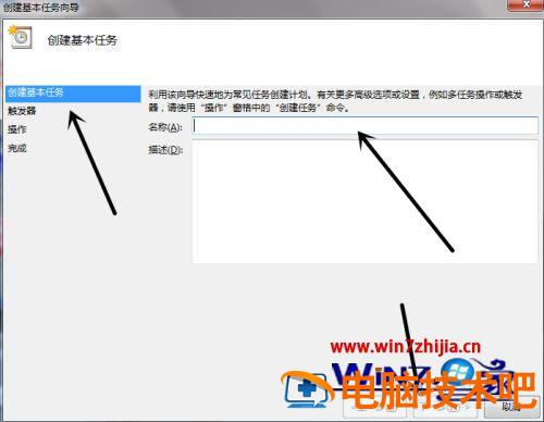 2、此时页面会切换到【创建基本任务向导】编辑页面,在创建基本任务向导编辑页面,我们设置好任务的【名字】和【描述】然后点击下方的【下一步】按钮。