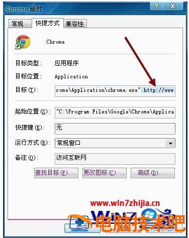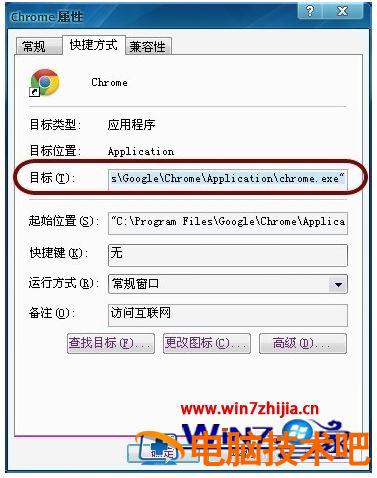 2、在“快捷方式”的目标中,检查chrome.exe文件路径。