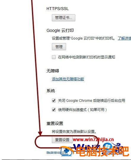 步骤4:重置Chrome浏览器设置
