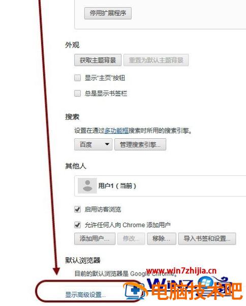 进入Chrome设置页,点击最下方的“高级设置”。