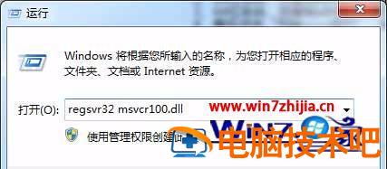 4、最后点击“开始——运行”,输入“regsvr32 msvcr100.dll”命令后按回车即可解决错误提示。