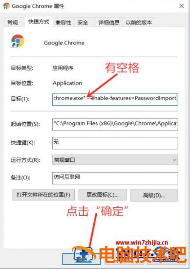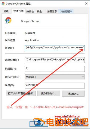 3、输入“空格”和“–enable-features=PasswordImport”。