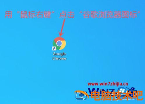 1、用“鼠标右键”点击“谷歌浏览器图标”。