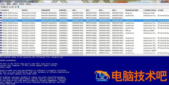 通过蓝屏代码提示,我们分析出这个蓝屏出错代码的缘由是:ntoskrnl.exe。