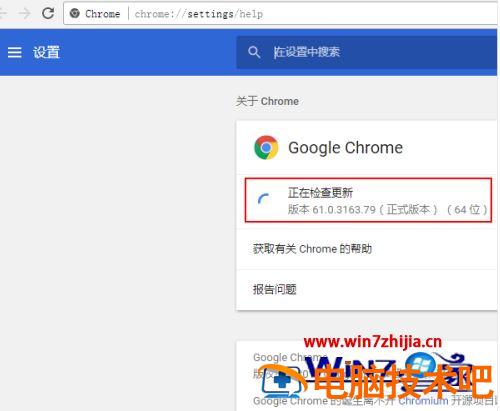 2、检查是否有新的更新。打开“关于Chrome”的页面以后,会有两件事情发生: