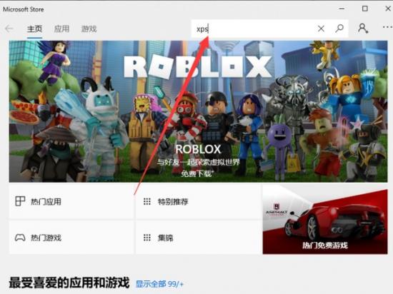2.打开应用商店后,我们将其输入顶部搜索框xps,点击搜索。