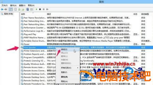 3、服务列表中找到Print spooler,发现这个没启动(没有正在运行)。