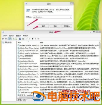 6、当然也可以用WIN+R(运行)输入services.msc(服务),打开服务(其它步骤同上)。
