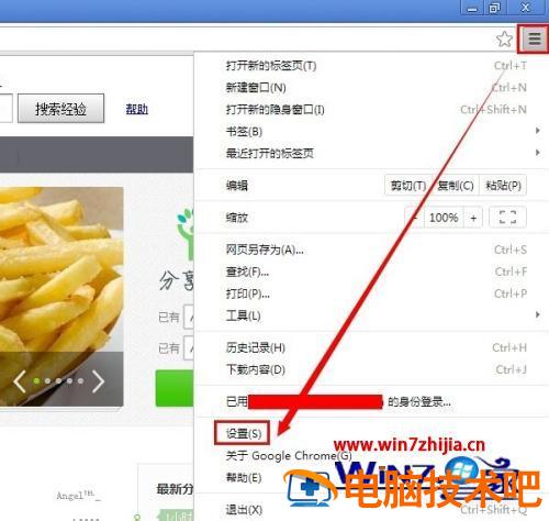 1、在Google Chrome浏览器中的右上角处,点击【三】杠按钮再点击【设置】。