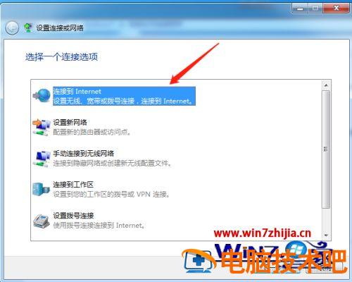 4、弹出【设置连接或网络】窗口,点击第一项【连接internet】。