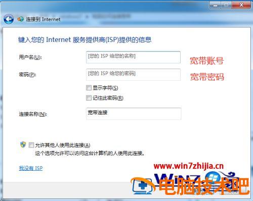 7、弹出设置宽带账户密码界面,填好宽带账户和密码之后就可以点击【连接】按钮,进行连接宽带了。