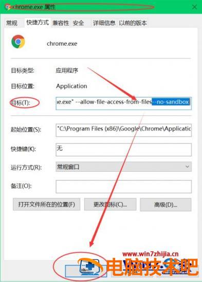 方法2 :找到谷歌浏览器的快捷方式,图标上右键,点属性,在目标栏目输入‘–no-sandbox’确定保存 重启进入浏览器!