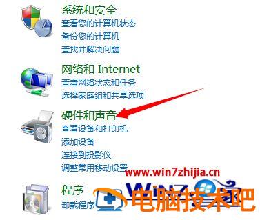 7、点击硬件和声音。