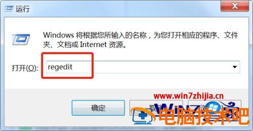 2、在运行窗口,输入regedit替换cmd,点击确定。